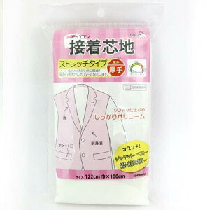 ソフトな仕上がり、しっかりボリューム、厚手ストレッチタイプ。 ニット等の伸びる生地に最適です。表地の風合いを活かしボリュームを出します。 ジャケット・ベストの襟・前身頃にオススメです。■サイズ:122cm×100c