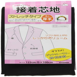 KIYOHARA サンコッコー 接着芯地 ストレッチ 厚手 幅122cm×100cm 黒 SUN50-44 ニット等の伸びる生地に最適です。表地の風合いを活かしボリュームを出します。 商品本体サイズ:...