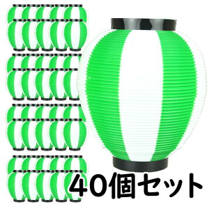 【ポリ提灯】なつめ型(緑/白)40個セット