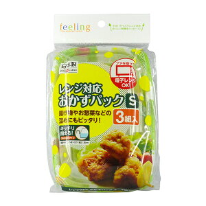 電子レンジにかけられるおかずパックSサイズ3組入。 フタを外すとレンジにかけられ、温かいおかずを食べられる。 フタがキッチリ閉まるかん合蓋タイプ。 安心感のある日本製。 ■サイズ(約) 幅10.