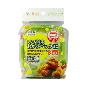 電子レンジにかけられるおかずパックミニサイズ3組入。 フタを外すとレンジにかけられ、温かいおかずを食べられる。 フタがキッチリ閉まるかん合蓋タイプ。 安心感のある日本製。 ■サイズ(約) 幅10
