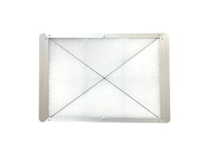 ふんわり厚手で油汚れをしっかりキャッチ! 汚れても吸引力が落ちにくい特殊構造! 1〜3カ月の交換でお手入れ楽々! 枠の素材はアルミ、フィルターは不織布 フィルターサイズ(298x237)