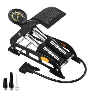 ◆商品名:SPOWER 自転車 空気入れ 仏式/英式/米式バルブ対応 ダブルシリンダー 高圧フットポンプ 携帯用ポンプ 折りたたみ 便利性 高剛性 高精度メーター 耐久性 頑丈性 省力 アダプター付属...