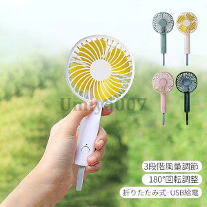 【手持ちと卓上置き両用デザイン】柄手があり、片手で使用可能、携帯も便利です。手持ちだけでなく、デスクに置きでも使用いただけます。【3段階の風量調節】使用時は、お好みに合わせて自由に風量を調節でき、ボタンで風量を弱風から