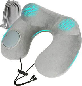 【商品サイズ】:40*28cm 重さ:約85g カラー:グレー/ブラック/ブルー. U字型枕×1、アイマスク×1、耳栓×1、収納袋×1 【簡単な操作】本体は予めエアポンプが内蔵されているので、別途持ち歩く必要がありません。手でポンプを...