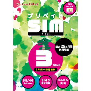 【この商品について】3年間+初月無料で最大37ヶ月間ご利用いただける楽天回線のプリペイド高速データ通信専用SIMカードです。 楽天回線エリアでは5G/4G高速データ通信を最大3GB/月までご利用いただけます。3GB/月利用後は通信速度...