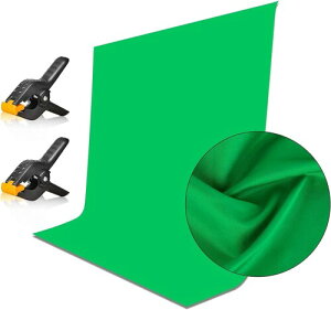 EMART 背景布 グリーンバック 撮影用 無反射 スクリーン布 150x200cm 不透明 背景紙 シワが出来やすくない 垂れ感が良い 写真撮影やビデオに対応 無地 強力クリップ付き 背景シート ポリエステル生地...