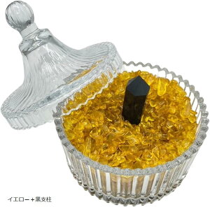 蓋つき ビーズさざれチップ付 玄関 インテリア 浄化皿 置物 風水 イエロー+黒支柱ブランドS.T.S.Gカラーイエロー+黒支柱サイズ等400gイ...