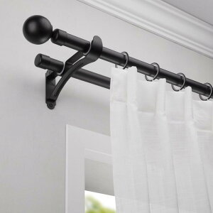 2個セットカーテンロッド アルミ合金製 特厚 黒 白 シングル ダブル 壁 天井 取り付け カーテン支柱 モダン・素材: アルミ合金・カラー: 特厚マットブラック(丸球-シングル), 特厚マットブラック(丸球-ダブル),...