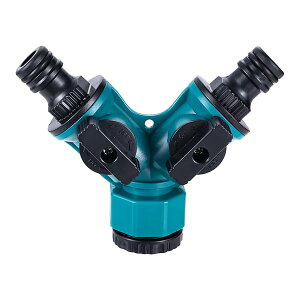 中間コック付き 2方向へ自由に分岐 ホース ジョイント コネクター Y型継手 ソケット分岐継手 水道 分岐 散水用具 園芸用品 ガーデン 農業灌漑ブランド色ターコイズモデル商品説明【商品概要】