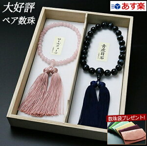 仏壇屋 滝田商店 数珠セット 【 ペア数珠 】 数珠 男性用(縞黒檀 2天デュモートライト 22玉 正絹房)/数珠 女性用(紅水晶 7mm玉 正絹房) 【 数珠袋付き 】すべての宗派でお使いいただける...