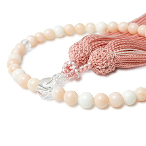 すべての宗派のお客様にお使い頂ける女性用のお数珠でございます。素材は、透明感の美しい本水晶でございます。アクセントには、3月の誕生石である、深海珊瑚を使用させて頂きました。玉サイズは約7ミリサイズと少し小ぶりで...