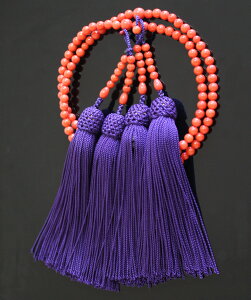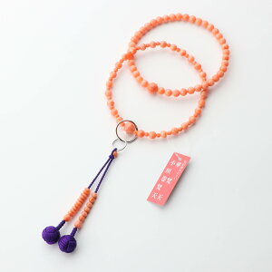 メーカー希望小売価格はメーカーカタログに基づいて掲載しています 浄土宗仕様の女性用本式数珠です。珠は深海珊瑚(3A)で揃えました。房は紫色の小田巻梵天房で仕立てています。高級感ある桐箱に入れてお届けいたします...
