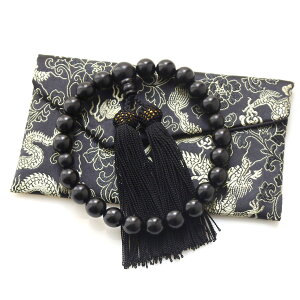 22玉房の素材:正絹頭付房(黒色)備考:数珠袋付き、数珠は桐箱入りすべての宗派でお使いいただける男性用の念珠です。黒オニキスの12mm玉を使用しました。正絹の頭付房がついています。数珠袋(数珠入れ)