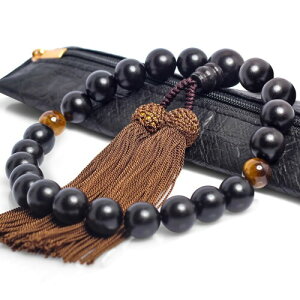 ?善念珠屋 数珠 男性用 葬儀 縞黒檀 虎目石 数珠袋付き 黒ネクタイ 礼装 フォーマル 葬儀用 法事用 念数珠 お盆 メンズ 紳士用 じゅず すべての宗派で使用可能 (房 焦茶) 【質感ある縞黒檀】...