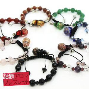 商品情報 〓全体の大きさ〓約16〜30cm(サイズ調節可能) 〓素材〓真鍮 トンボ玉 天然石 ビーズ 紐 小瓶のコルク部分にアロマオイルを染み込ませて香りを楽しめるお洒落な天然石ブレスレット。 デイリー...