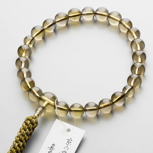 どの宗派でもお使いいただける男性用の略式数珠です。珠は黄水晶の大玉で揃えました。房は珠の色に合わせて、キャメル・ブラウン系の組紐で仕立てています。