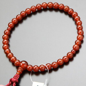 すべての宗派のお客様にお使い頂ける女性用のお数珠でございます。素材は、本瑪瑙でございます。深みのある赤色が魅力で、女性数珠の中でも、人気の高い素材でございます。房には、銀ラインが入った、銀花かがり房を採用しま