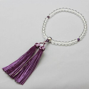 メーカー希望小売価格はメーカーカタログに基づいて掲載しています 本水晶で仕立てた女性用の京念珠です。珠は、スタンダードな本水晶の丸玉を主玉にし、天玉の紫水晶と隣り合うように本水晶の平切子玉と藤雲石を合わせて、さりげない