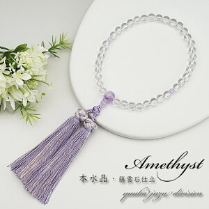 ギフト対応(ラッピング画像) 【 数珠専門店 翔龍念珠堂 女性用数珠(念珠) 】 主玉 ・・・ 本水晶 《クォーツ》 約8ミリ 親玉 ・・・ 藤雲石 《ラベンダーアメジスト》 約10ミリ...