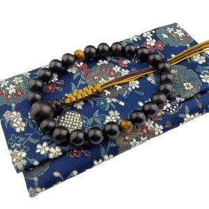妙蓮花 数珠 男性用 じゅず 黒檀 22玉 天玉虎目石 数珠+数珠袋セット 片手数珠 略式数珠 宗派通用 念珠 おしゃれ プレゼント 葬儀 仏事ギフト 贈り物 贈答 メンズ葬儀、お通夜、法事、お墓参りにて...
