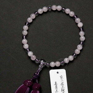 メーカー希望小売価格はメーカーカタログに基づいて掲載しています どの宗派でもお使いいただける女性用の略式珠数です。玉は本水晶と紅水晶を使用しています。房は玉の色に合わせての濃い紫色の房、そしてそれより明るめの紫色をアク