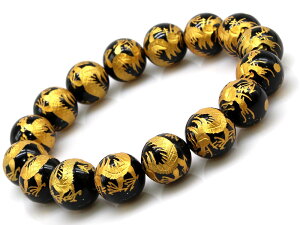 金彫り家紋数珠ブレスレット 金彫家紋オニキス 黒龍紋瑪瑙 天然石 風水 パワーストーン 1本のブレスレットに7人の戦国武将の金彫り家紋が組み込まれた豪華な逸品です。存在感&重量感抜群の数珠になります。