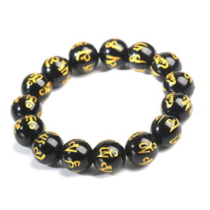 ■梵字 エボニー ブレスレット 落ち着いた風合いのエボニー 天然石の梵字のブレスレット オニキス1珠に干支梵字が全て描かれております。写真は銀彫りですが、金彫りもお選びいただけます。 梵字以外エボニーを使用しているため 軽