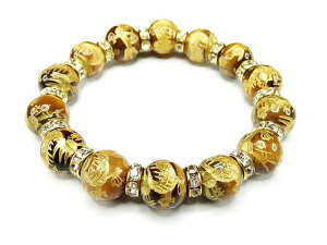 『青龍・朱雀・白虎・玄武』四神獣の彫り玉を四方にセットしたブレスレットです。 四神の彫玉は豪華な金色仕上げ。煌びやかに輝くカット水晶を使用! 煌びやかな輝きが際立つクリアーカラーに、ワンポイントで魅せれるボリューム感も