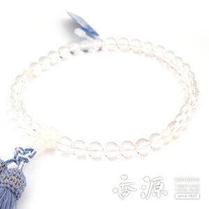 ブルームーンストーンを水晶に合わせたお数珠の登場です。 月長石とも呼ばれるムーンストーン。その中でも青色の光を放つブルームーンストーンを紹介いたします。 月長石は、表面を丸く研磨すると月の光りの様な乳白色の帯が見えるこ