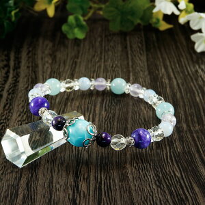 2018年秋冬の新作。心に平穏を与え、人間関係が良好になるようにサポートをするブレスレットです。 詳細: ・ストーン:ラリマー、チャロアイト、ブルーレースアゲート、ラベンダーアメジスト、アクアマリン、水晶 ・金具:シルバーメッ