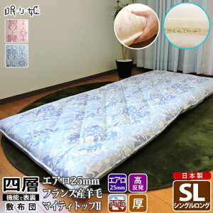 便利な裏表使えるリバーシブルタイプ。両面で仕様が異なる機能性のしっかりとした四層敷布団です。 春夏は通気性の良いエアロ側を上面に。直下にエアロがある事でお布団の中にこもりやすい熱気を外に逃がします。 秋冬は保温性効果を発揮する為エアロ...