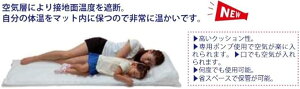 空気層により接地面温度を遮断。自分の体温をマット内に保つので非常に温かいです。