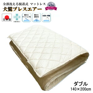 商品名 犬鷲ブレスエアー 全部洗える制菌敷布団 ダブルサイズ サイズ 140cm×200cm 素材 表地:綿100% 抗菌防臭加工(SEK基準採用) 裏地:ポリエステル100% ハニガム立体メッシュ 中綿:ポリエステル100% 制菌加...