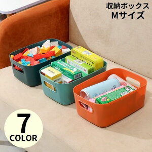 インナーバスケットとして棚・ベッド下・引き出し収納OK♪ プラスチック製の持ち手付き収納かごMサイズです。 キッチン収納箱、ブラジャー・パンツ・タオル等の衣類、卓上の化粧品収納にも◎ ※Sサイズ・Lサイズ・S/M/Lサイズ各1の同色3個