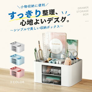 【商品説明】【デスク整理の決定版★大容量収納ボックス】文房具、小物、コスメなどをスッキリ収納!広々としたメインスペースに加え、細かいアイテムも収納できる引き出し付きで、デスク周りを美しく整理できます。【透明引き出し★