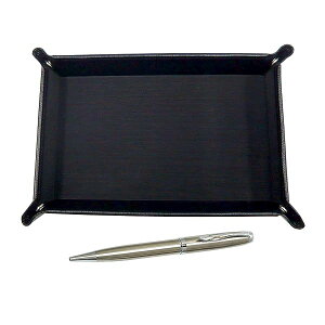 日本製のシボ牛革ペントレイとボールペンのセット ペントレイ(黒) 材質:内側布貼り、外側牛革 サイズ:185mm×125mm×30mm ペン 材質:ステンレス サイズ:全長137o×軸径Φ7.5o