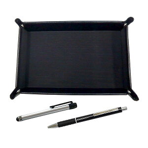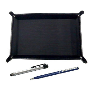日本製のシボ牛革ペントレイと日本製スマートフォン用タッチペンと国産太軸金属ボールペン(黒軸)のセット ペントレイ(黒) 材質:内側布貼り、外側牛革 サイズ:185mm×125mm×30mm タッチペン(銀)...