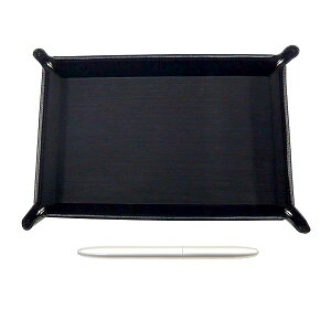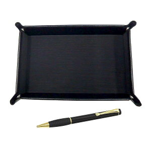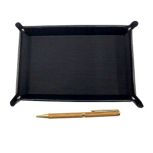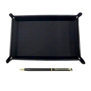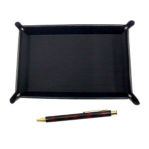 日本製のシボ牛革ペントレイと金属回転式ボールペンのセット ペントレイ(黒) 材質:内側布貼り、外側牛革 サイズ:185mm×125mm×30mm ペン 材質:ステンレス サイズ:全長138mm×軸径12mm