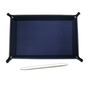 日本製のシボ牛革ペントレイと金属製ボールペンのセット ペントレイ(青) 材質:内側布貼り、外側牛革 サイズ:185mm×125mm×30mm ペン 材質:ステンレス サイズ:全長137mm×軸径10mm