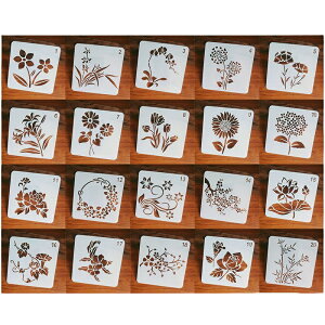 手帳サイズのステンシルシート20種類各1枚ずつの20枚セットです。 花や動物など、様々な種類を取り揃えており、手帳のデコレーションやメッセージカード用のイラストとしてもご使用いただけます。 柔軟性もあるため、筒状のものに絵を描