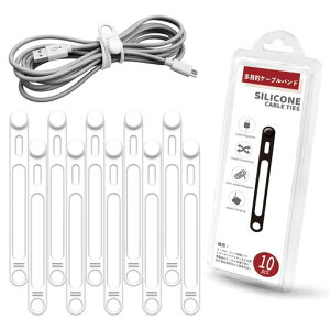 【多機能ケーブルバンド】材質:高弾性で丈夫なシリコン、サイズ:105mmx12mmx6mm、重さ:2.3g/本、個数:16本セット、色:ホワイト*10。伸縮性と耐久性に優れ、最大3倍の長さに引き伸ばせます。柔らかい素材でコードに跡が残...