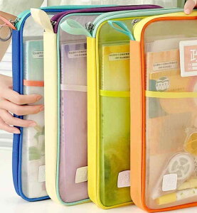 書類 整理 バッグ 科目 分類 収納 袋 メッシュ 厚手 ファスナー 大きい開口部 大容量 学生 教科書 ノート プリント 持ち手付き 紫 青 緑