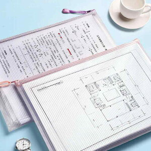 書類 整理 バッグ 透明 防水 プラスチック メッシュ ファイル ファスナー 分類 収納 袋 小学生 文房具 プリント 教科書 オフィス用品 白 青 緑