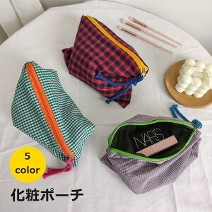 コスメ用品や文房具など、小物類の収納に! チェック柄がかわいい化粧ポーチです。 【サイズについて】 画像をご参照ください。 【カラーについて】 生産ロットにより柄の出方や色の濃淡が異なる場合がございます...