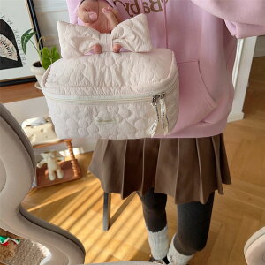 ふわふわ キルティング ボックス ミニバッグ ボリューム感のあるふわふわキルト素材折りたたんで平たくなる箱型タイプは見た目以上に収納できます使わない時は畳んで持ち運びできとても便利です蓋の裏側には便利なメッシュポケット付き