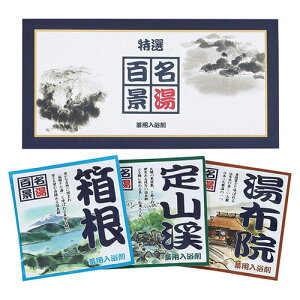名湯百景 三つ折3包入おうちのお風呂で温泉気分。メーカー型番:GM-3内容物:箱根(約25g)・定三渓(約25g)・湯布院(約25g)×各1箱サイズ:約10×211×108mm(入)箱入重量:約110g箱種類:化粧箱原産国:日本製天然...