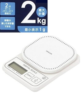 1g単位で1kgまで計れる 収納に便利なフック穴付き ホワイト KD-187 WH キッチン はかり 料理 デジタルサイズ:17×12×2.7cm、計量皿寸法(mm):120×120最大計量:1kg、最小表示:1g素材...