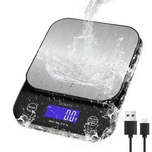 洗えるキッチンスケール IP67防水 デジタルはかり 丸洗い可能 クッキングスケール 1g単位 10kg大計量 電子秤 USB充電式 計量器 304ステンレス計量皿 お菓子作り 測り 料理用 計り 水準器付き ハカリ ...