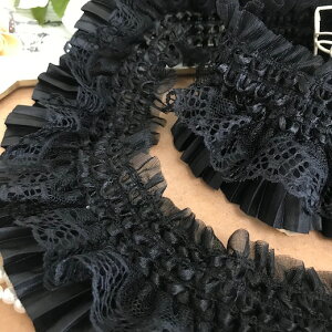 ストレッチのシフォンフリルレース・リボンになります。 衣装やドレス、お洋服や手作り作品など に縫い付けるだけで印象がかわります。 サイズ:W8cm カラー:ブラック 長さ:50cm